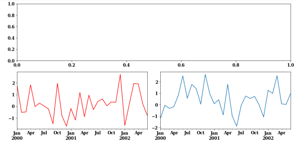 I am trying to plot df['A'] and df['B'] on the same top plot. Could you please advise what I have overlooked?