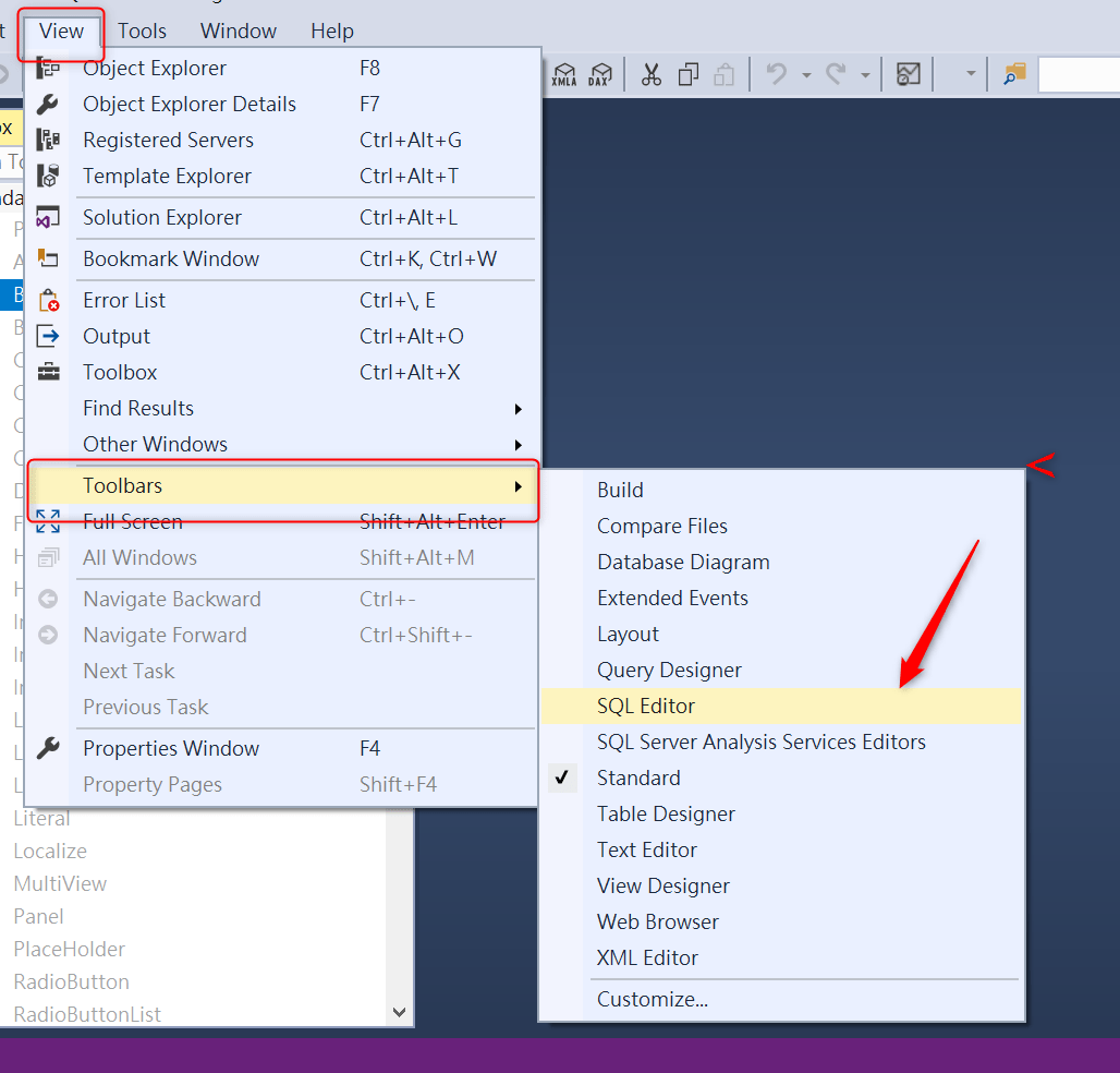View -> Toolbars -> [choose] SQL Editor