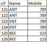 SELECT cif, name, mobile