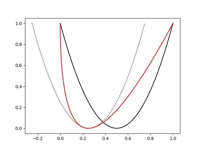 One way of doing so is defining x,y as before, but applying a shift. The dotted line shows if you just shift it. But now at the top most y we don’t want to shift it, so we’d like to weight the shifted version on the bottom (y=0) by 1 but on the top (y=1) by 0 such that we get a gradual interpolation. We can do this by multiplying the shift by (1-y):