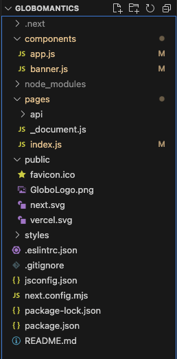 I have 4 files – banner.js, app.js, index.js and GloboLogo.png (plus all the other files from running npx create-next-app globomantics).