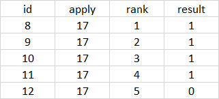 I would like to select the row that caontains the max value on a column (rank) with specific conditions :