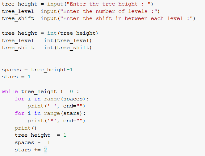 I just started a python course in my university and need help solving an exercise. It is asking me to write a Christmas_tree(h,n,s) function that draws a christmas tree with the "*" character. The exercise requires to have a