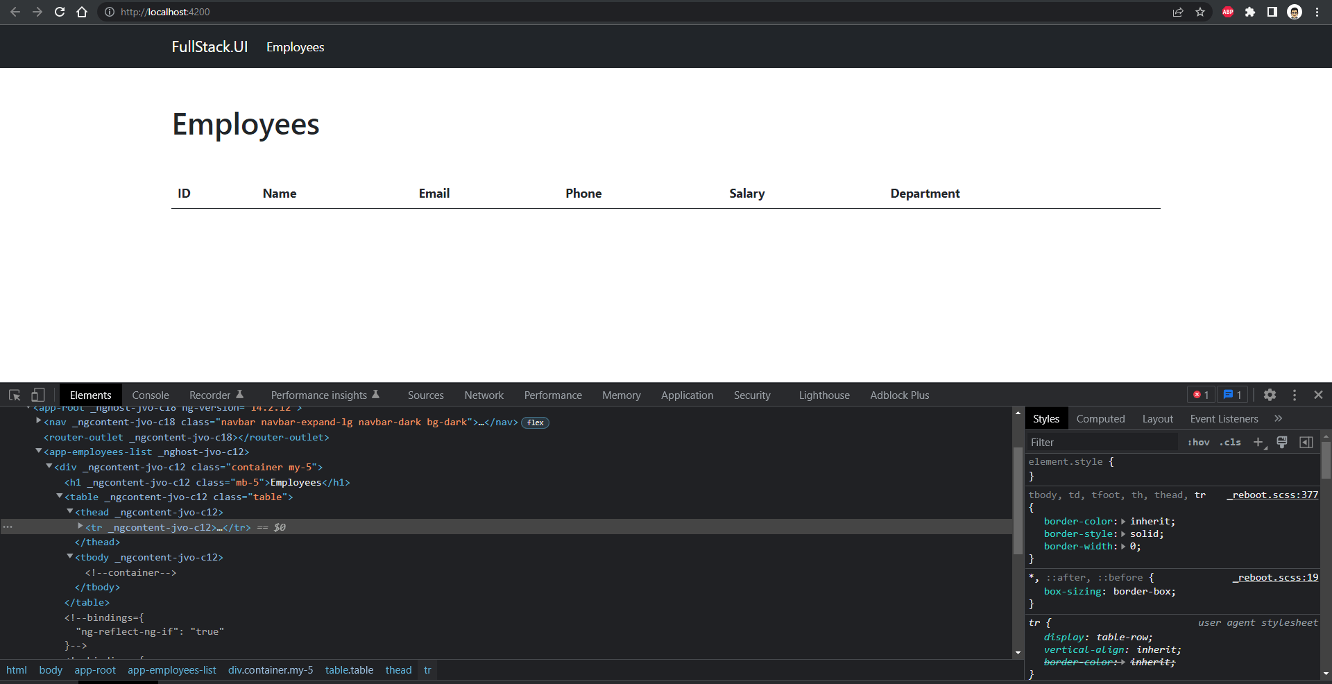 So I’m working on a demo CRUD project and I requested the sections from my component where I hard-coded employees data. I am not able to receive the data in table rows. I don’t see what’s making this not work.