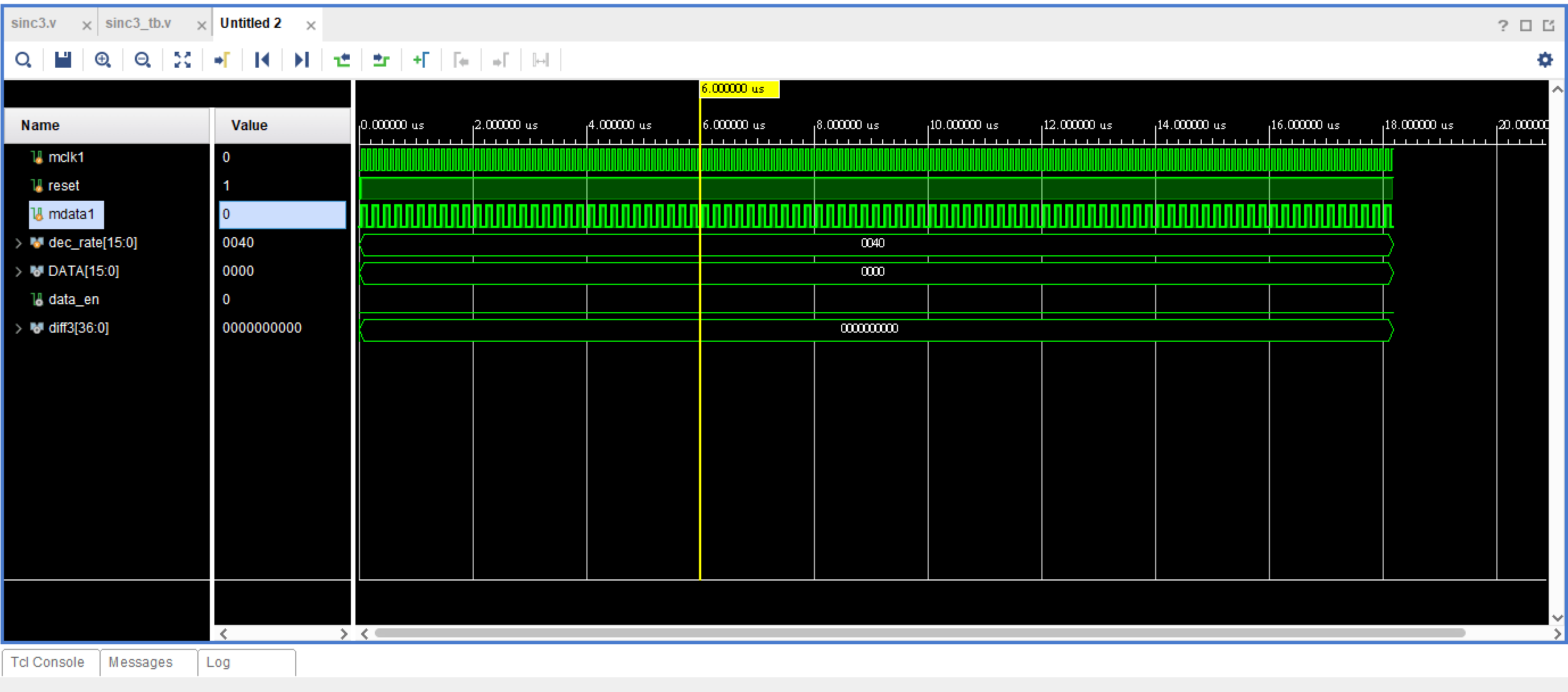 I have written a testbench for the same, with the following inputs: mclk1 = 10MHz, mdata1 = 5MHz and dec_rate = 64
