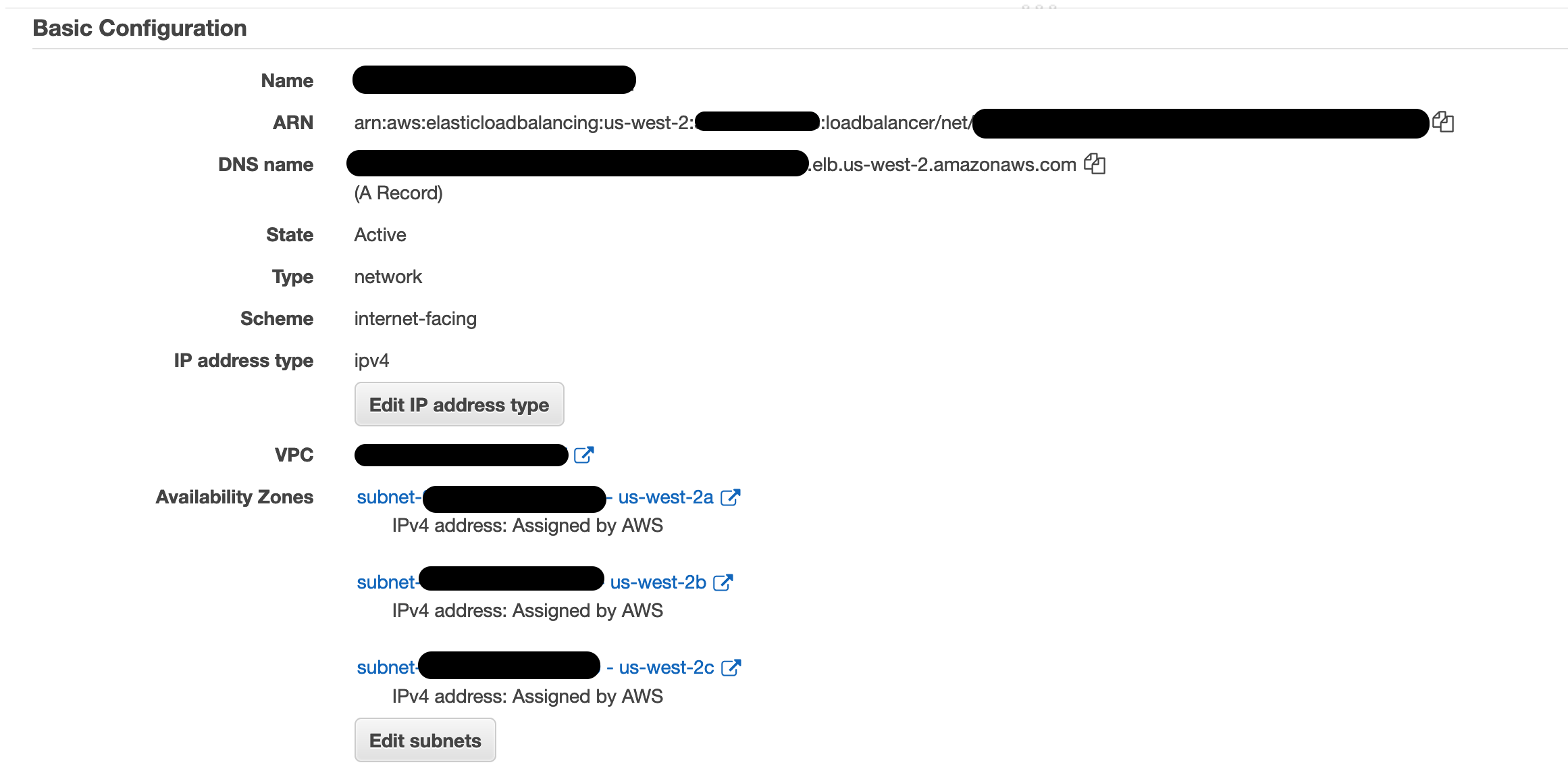 The Resource Type is Regional resources, and the region is the same as my (network) load balancer (us-west-2).
