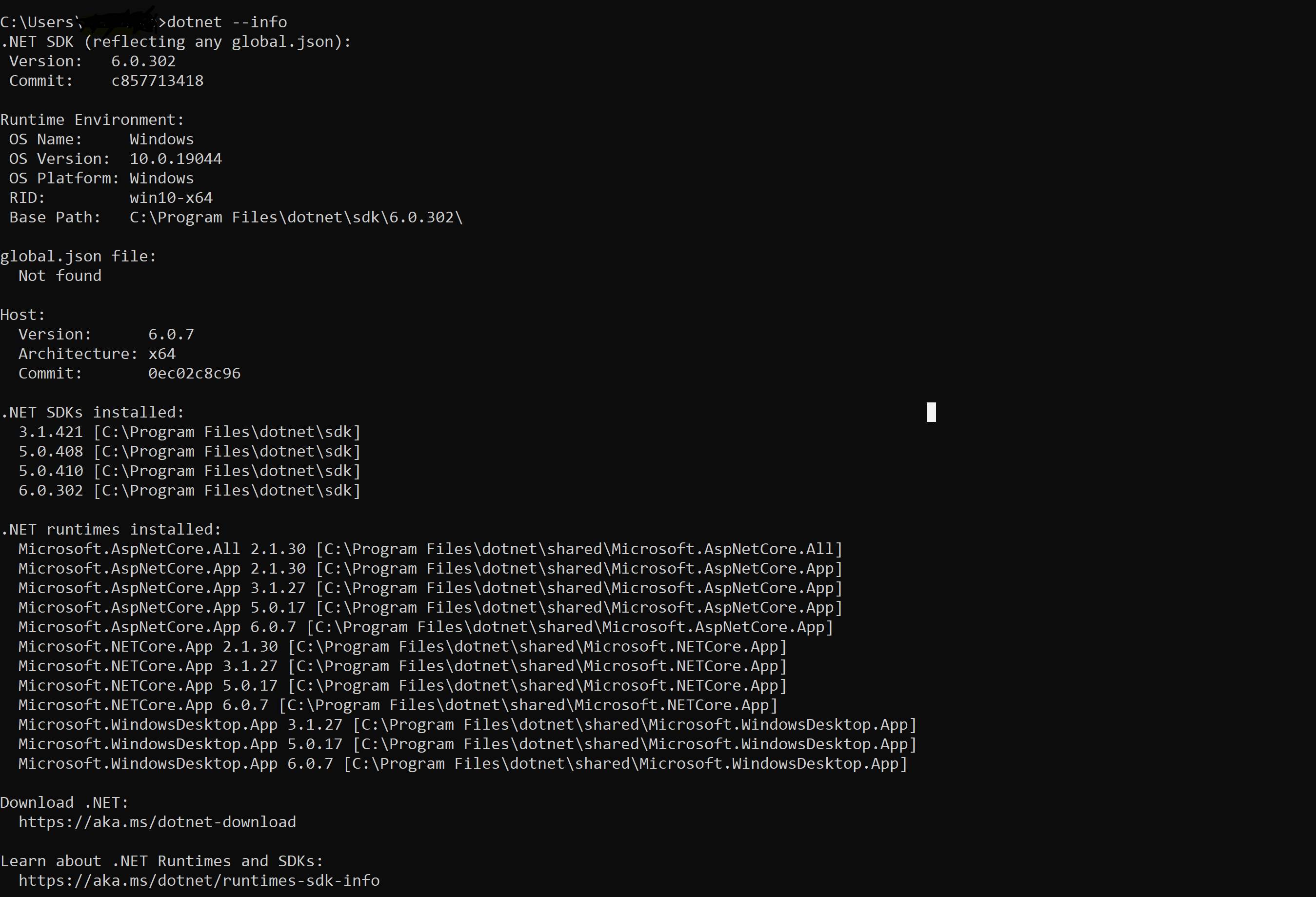- no global.json set