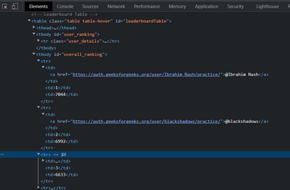 I just want all the user handles present in this table (https://practice.geeksforgeeks.org/leaderboard/)