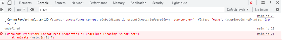 Uncaught TypeError: Cannot read properties of undefined (reading 'clearRect') at animate