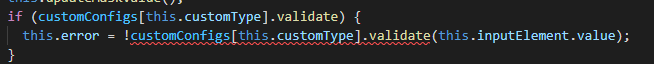 Thanks for the playground, that highlights where the issue stands; Forget the above and simply have it as customConfigs[this.customType].validate?()