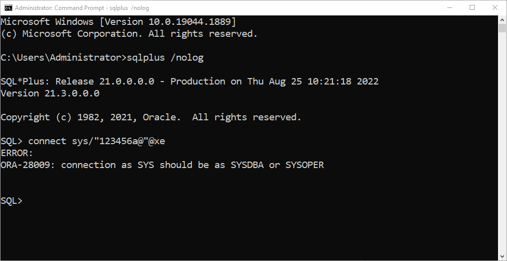 SQL*Plus: Release 21.0.0.0.0 - Production on Thu Aug 25 10:21:18 2022