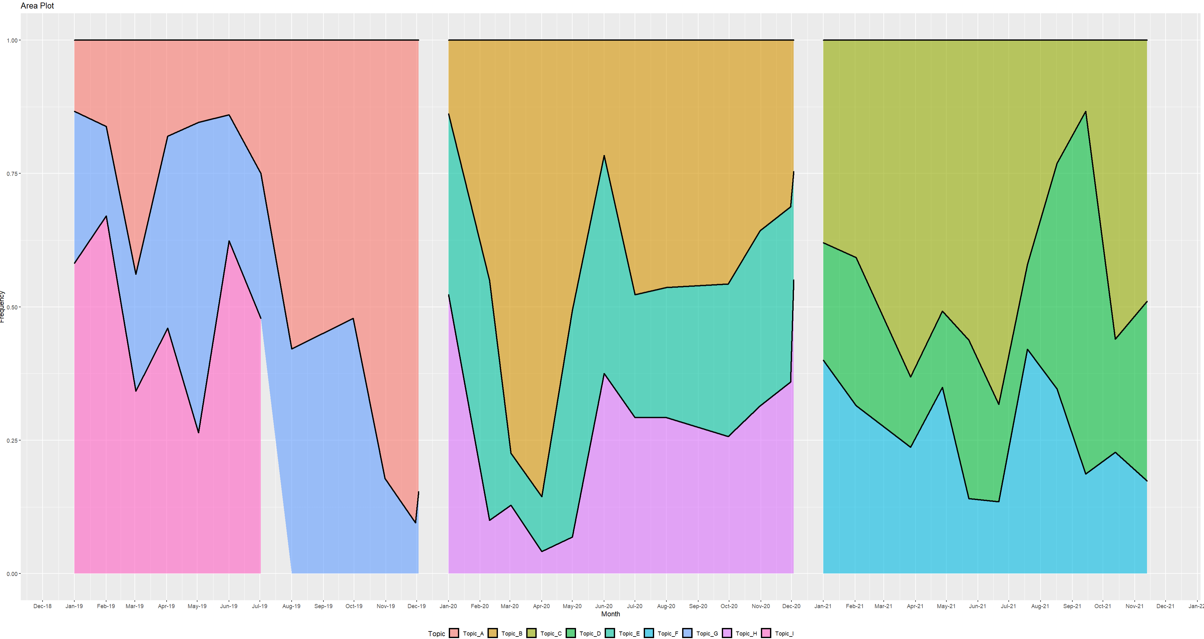 Topic = c("Topic_A", "Topic_A", "Topic_A", "Topic_A", "Topic_A", "Topic_A", "Topic_A", "Topic_A", "Topic_A", "Topic_A", "Topic_A", "Topic_A", "Topic_B", "Topic_B", "Topic_B", "Topic_B", "Topic_B", "Topic_B", "Topic_B", "Topic_B", "Topic_B", "Topic_B", "Topic_B", "Topic_B", "Topic_C", "Topic_C", "Topic_C", "Topic_C", "Topic_C", "Topic_C", "Topic_C", "Topic_C", "Topic_C", "Topic_C", "Topic_C", "Topic_D", "Topic_D", "Topic_D", "Topic_D", "Topic_D", "Topic_D", "Topic_D", "Topic_D", "Topic_D", "Topic_D", "Topic_D", "Topic_E", "Topic_E", "Topic_E", "Topic_E", "Topic_E", "Topic_E", "Topic_E", "Topic_E", "Topic_E", "Topic_E", "Topic_E", "Topic_E", "Topic_F", "Topic_F", "Topic_F", "Topic_F", "Topic_F", "Topic_F", "Topic_F", "Topic_F", "Topic_F", "Topic_F", "Topic_F", "Topic_G", "Topic_G", "Topic_G", "Topic_G", "Topic_G", "Topic_G", "Topic_G", "Topic_G", "Topic_G", "Topic_G", "Topic_G", "Topic_G", "Topic_H", "Topic_H", "Topic_H", "Topic_H", "Topic_H", "Topic_H", "Topic_H", "Topic_H", "Topic_H", "Topic_H", "Topic_H", "Topic_H", "Topic_I", "Topic_I", "Topic_I", "Topic_I", "Topic_I", "Topic_I", "Topic_I"), Frequency = c(22L, 27L, 68L, 34L, 60L, 13L, 23L, 11L, 12L, 23L, 19L, 22L, 9L, 36L, 127L, 83L, 37L, 19L, 31L, 19L, 32L, 25L, 20L, 17L, 19L, 22L, 48L, 32L, 36L, 71L, 37L, 12L, 10L, 37L, 48L, 11L, 15L, 10L, 9L, 19L, 19L, 14L, 22L, 51L, 14L, 33L, 22L, 36L, 16L, 10L, 31L, 36L, 15L, 10L, 20L, 23L, 21L, 14L, 20L, 17L, 18L, 22L, 9L, 14L, 37L, 18L, 14L, 15L, 17L, 47L, 28L, 34L, 68L, 227L, 22L, 25L, 8L, 11L, 5L, 2L, 4L, 34L, 8L, 21L, 4L, 5L, 33L, 19L, 12L, 18L, 22L, 23L, 38L, 96L, 112L, 53L, 87L, 103L, 58L, 44L),