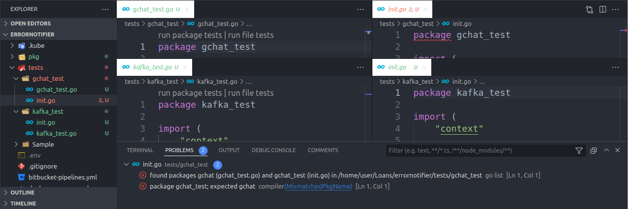 found packages gchat (gchat_test.go) and gchat_test (init.go) in /home/<<>>/errornotifier/tests/gchat_test