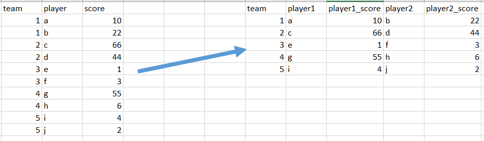 test_data = test_data.groupby('team').agg({'player':['first', 'last'], 'score': ['first', 'last']})