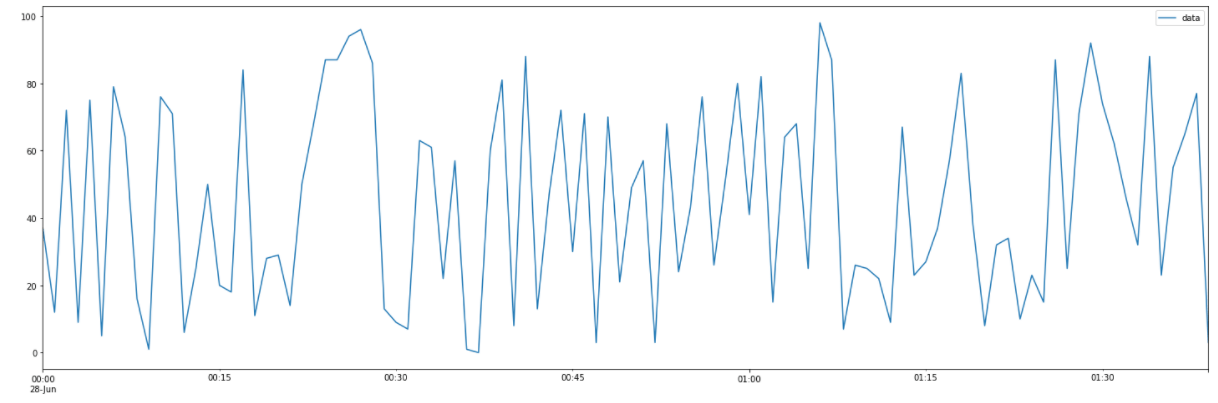 df = pd.DataFrame(np.random.randint(100, size=100), index=time,columns=['data'])