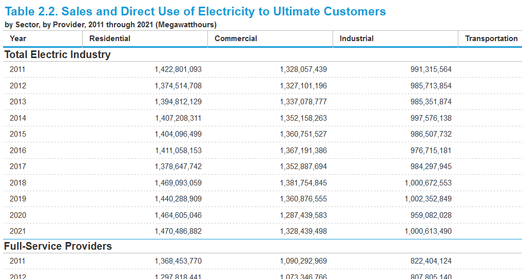 # Consider only the total electric industry table