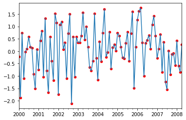 s.plot(ax = ax, marker='o', markerfacecolor='red', markeredgecolor='red')