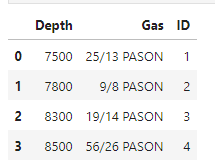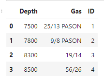 df = pd.DataFrame({'Depth':['7500', '7800', '8300', '8500'],