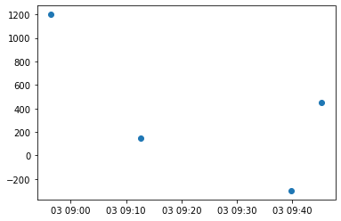 plt.plot(df['time'], df['value'],'o--', lw=0);