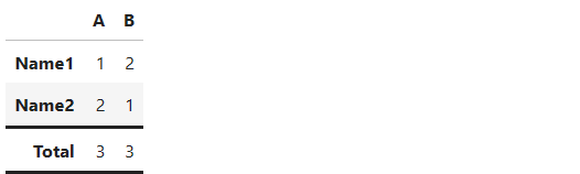 data = pd.DataFrame(index = ["Name1", "Name2", "Total"])