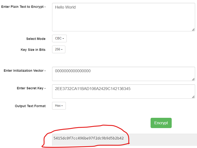 I’m using this code to encrypt: