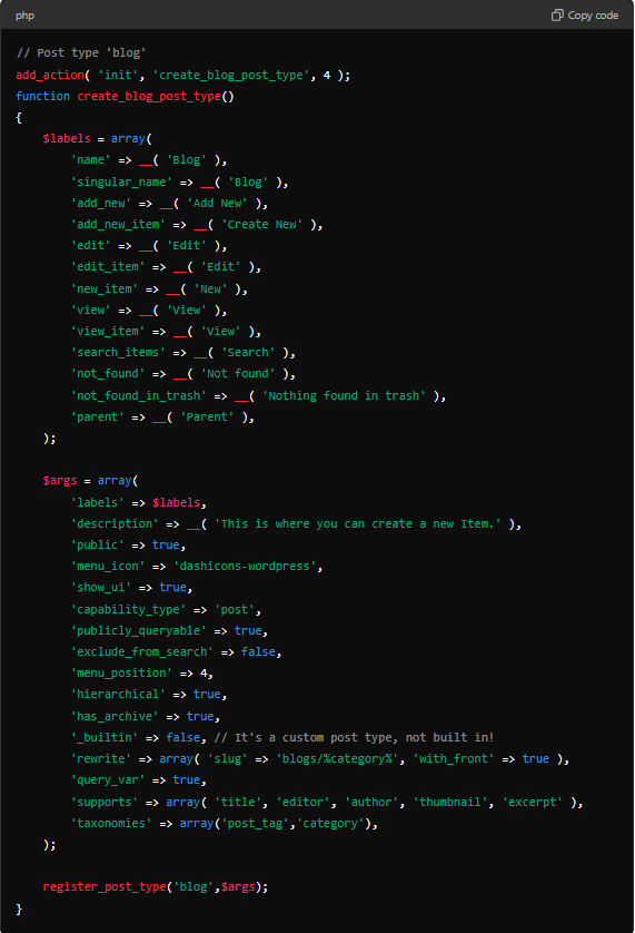 on my WordPress backend I have this php code for post type blog. Basically, I’m trying to change the rewrite slug from blogs/%category% to news-and-insights but I also need to redirect all the existing blog post to this new slug.