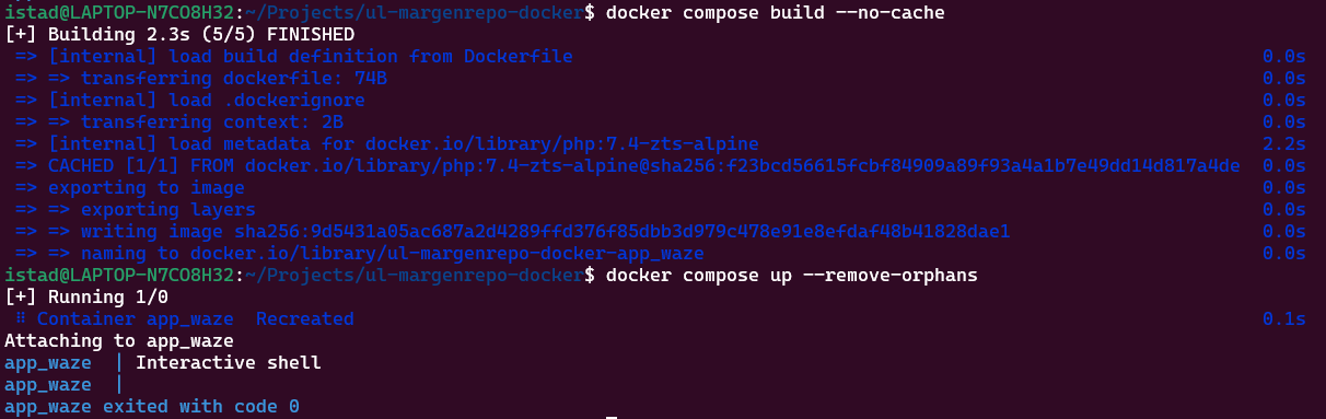 I am attempting to create a Docker container using the official PHP 7.4 ZTS image without making any modifications. However, when I start the container, it immediately stops as if the entrypoint is incorrect.