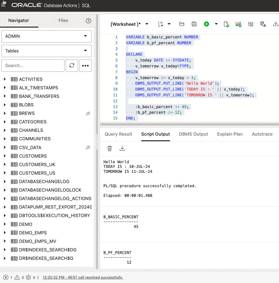 DBMS_OUTPUT.PUT_LINE('TOMORROW IS ' || v_tomorrow);