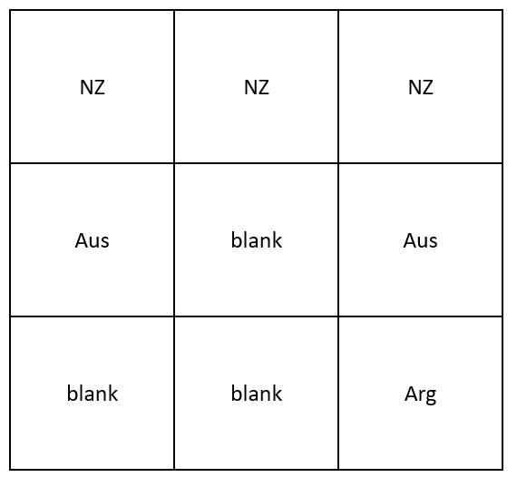 I expect the result to be a 3×3 grid with 3x NZ maps on the top row, 2x aus + an empty plot on the second row and 1x Argentina + 2x empty plots on the 3rd row.
