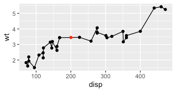 y = approx(x = df$disp, y = df$wt, xout = 200)$y,