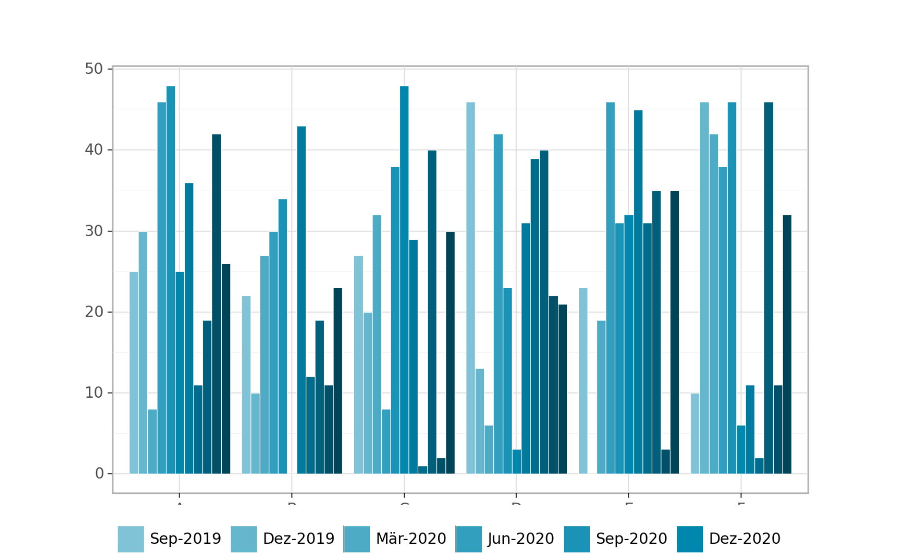 + scale_fill_manual(('#80C3D7','#66B7CE','#4DABC6','#339FBE','#1A93B6','#0087AE','#007A9D','#006C8B','#005F7A','#005168','#004457'), labels= lambda l: [v.strftime('%b-%Y') for v in l])