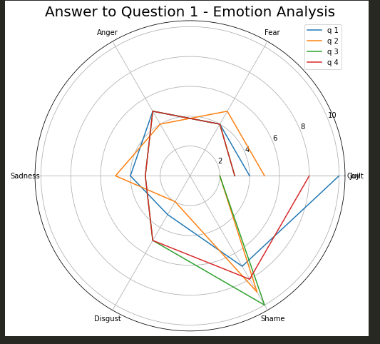 plt.title('Answer to Question 1 - Emotion Analysis', size=20)