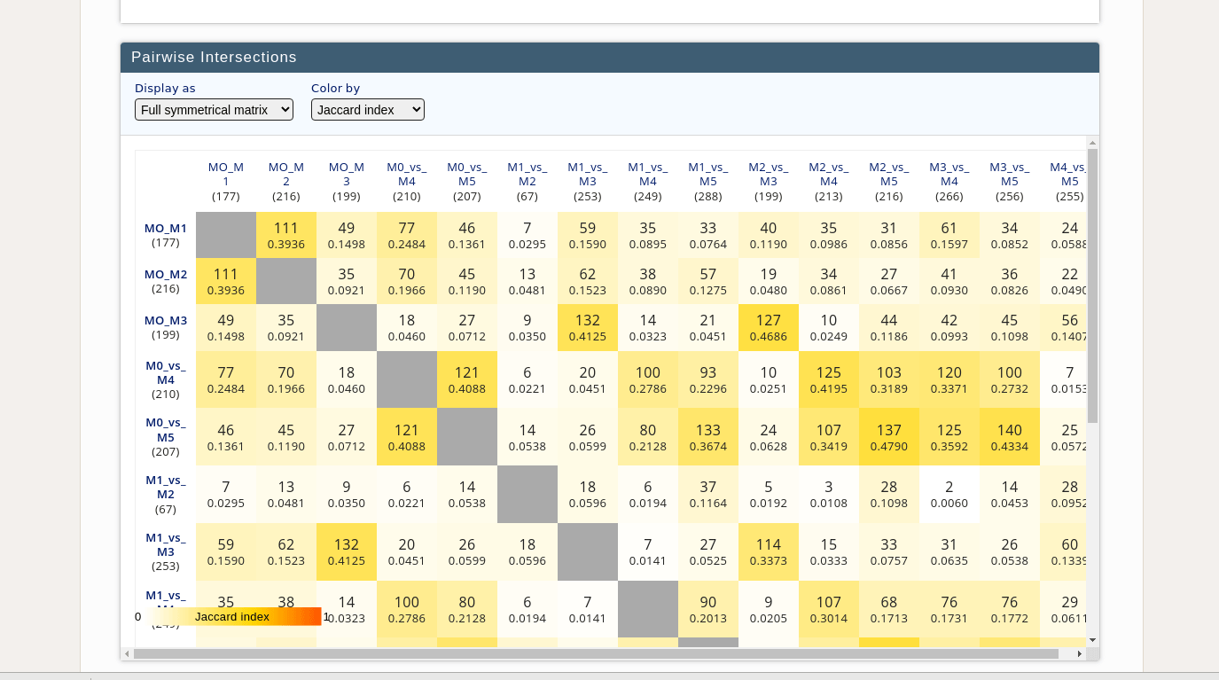 My objective is to get similar such as showing the element present in each sub-type and their jacard score