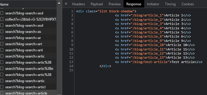 But the problem is that this piece of code should appear in this block <div class="blog-search-result" id="blog-search-result"></div>