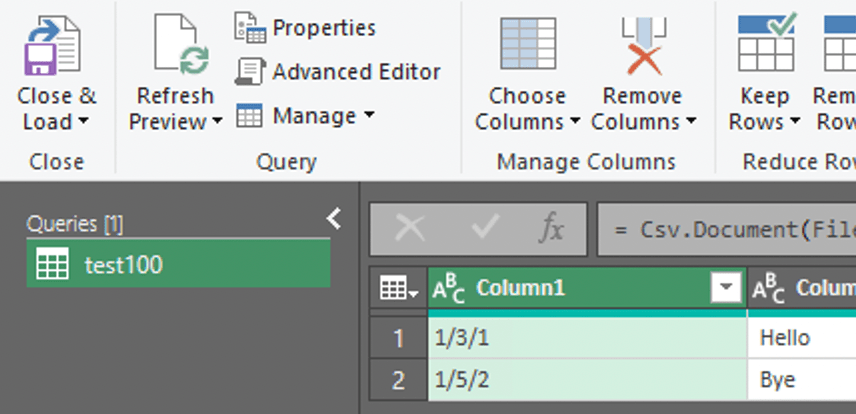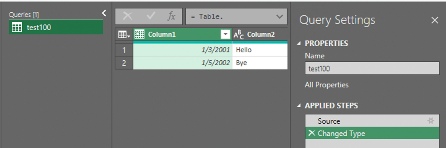 I’ll remove the step called Changed Type that Excel wisely introduced.