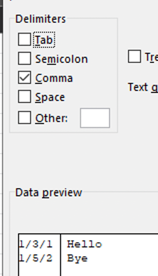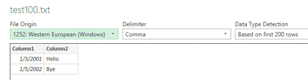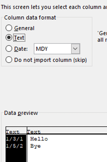 Excel asks me to choose my CSV file. After I chose it, Excel shows me what it believes it’ll import. As you noticed, 1/3/1 is converted to a date – which is what you don’t want.
