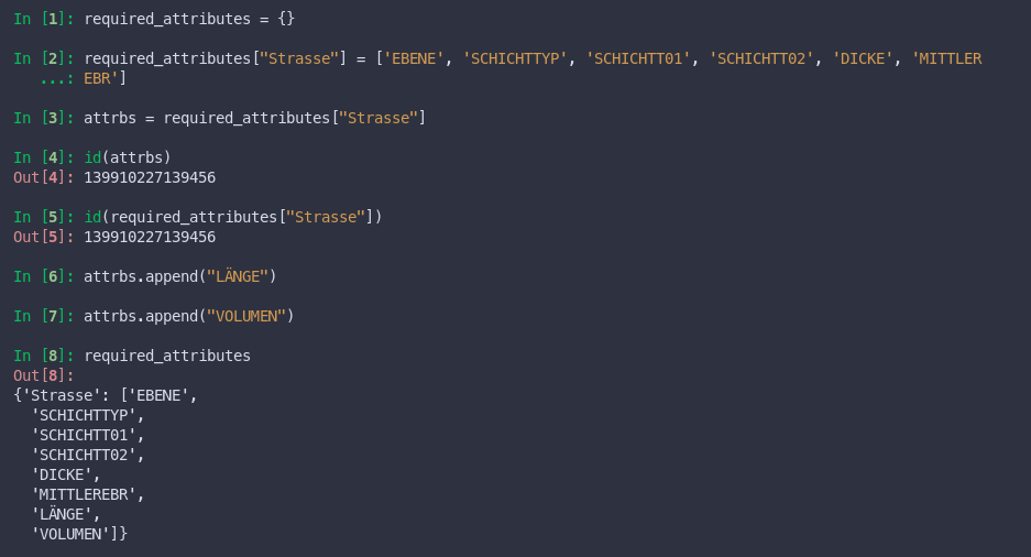 When I execute this function for the first time (when I click the button), everything works fine but when I use one more time after the first usage, required_attributes["Strasse"] includes the values "LÄNGE" and "VOLUMEN" that originally got added to attrbs and never got added to the dictionary.