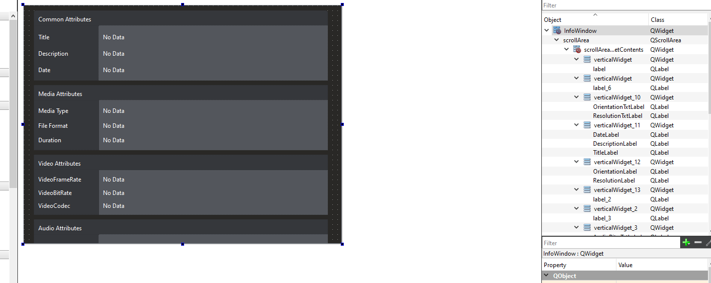 This infoWindow contains vertical layouts holding the videos metadata and all the layout are inside of a QScrollArea class.