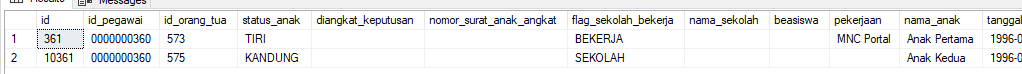 Table2: SELECT * FROM peg_dtl_anak WHERE id_pegawai = '0000000360'