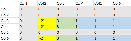 Col6 0 -2 3 1 1 1", header = TRUE)