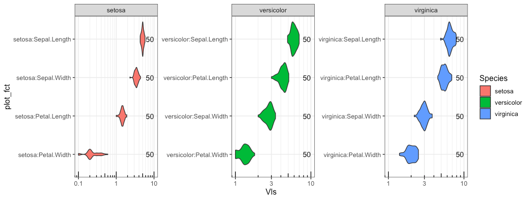 I would now like to list the number of observations per violin on the right side of each facet just inside the maximum border, which I’m sure is possible but cannot seem to find an example that does this sort of labeling, with violins and facets.