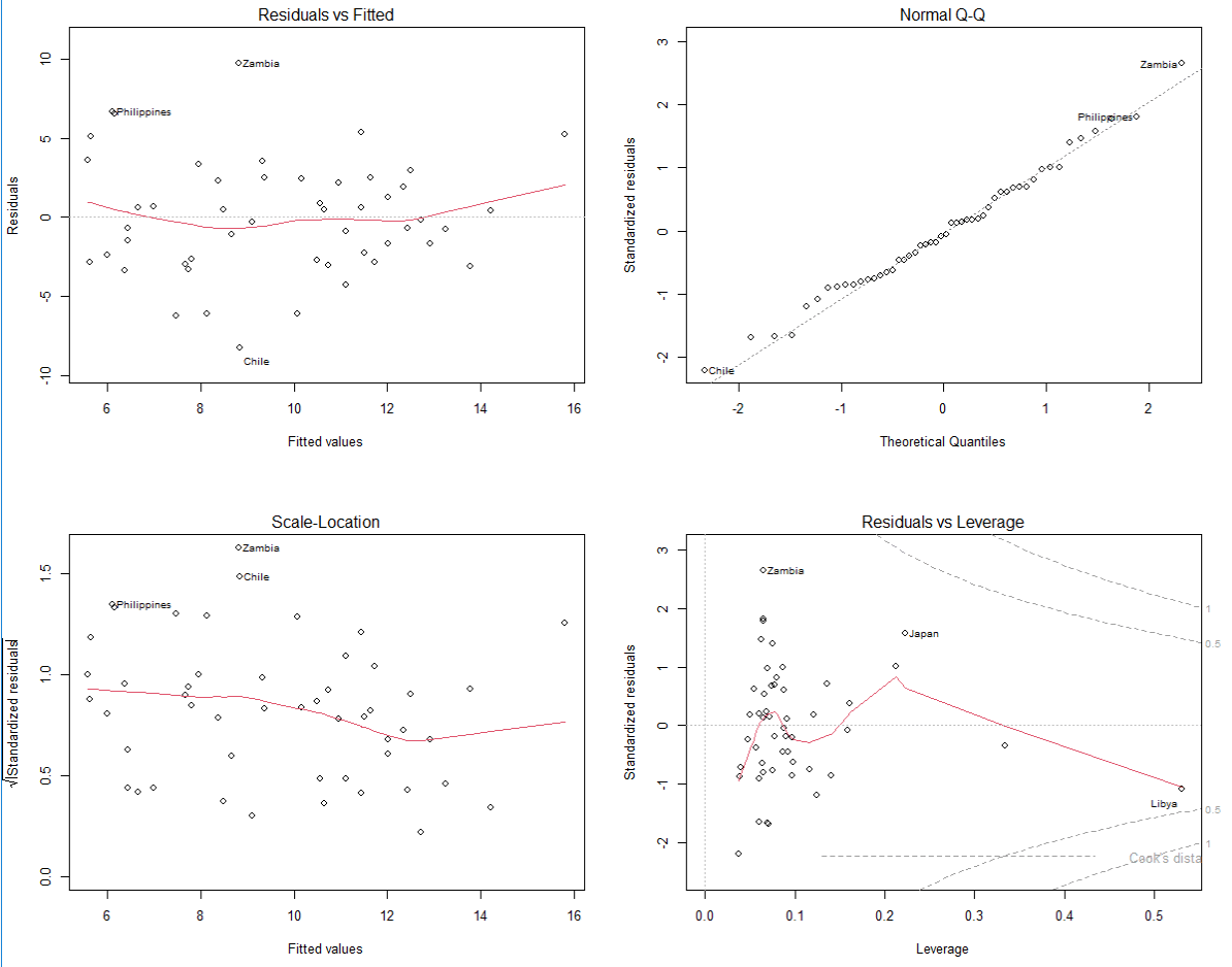 This is my diagnostic plot using the default plot() function