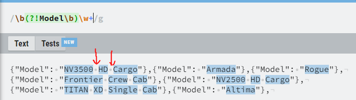 I am attempting to only match what model value is IE NV3500 HD Cargo or Frontier Crew Cab