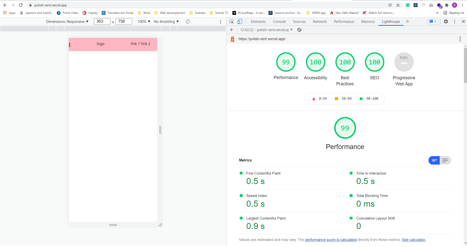 This is quite strange, Lighthouse shows a near-to-perfect score of your website on my computer.