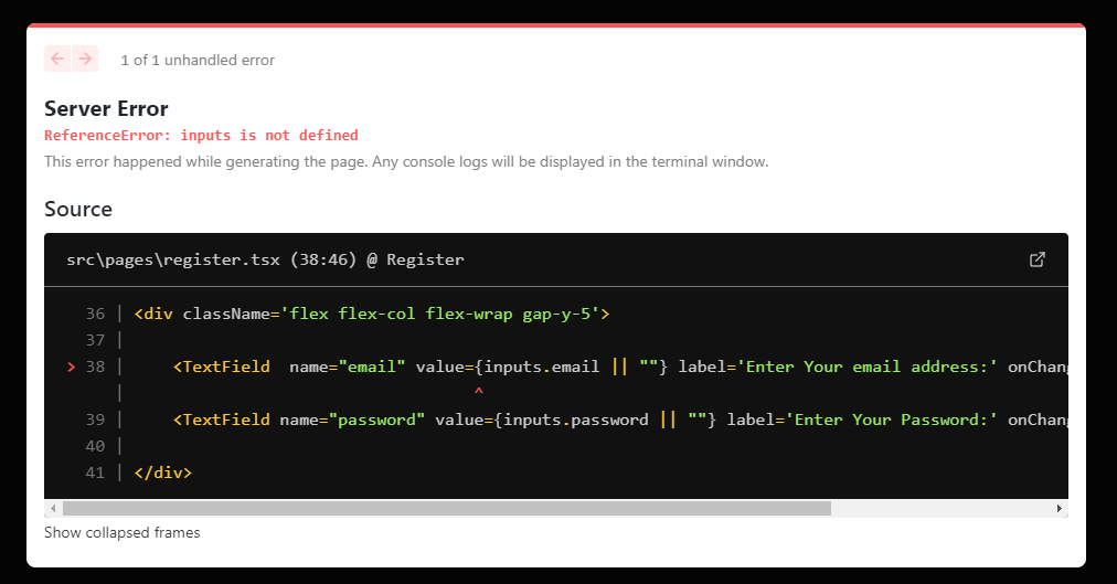 I was just trying to get the user input from email/pass and post to postgresql db but it say cannot read state