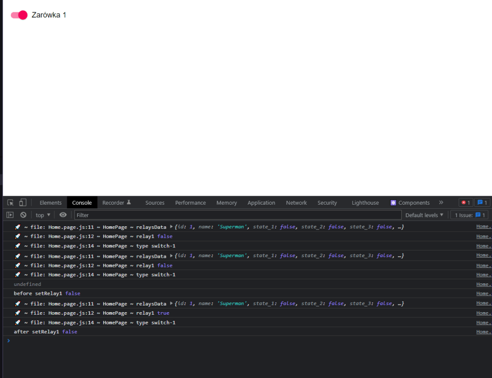 console.log("🚀 ~ file: Home.page.js:12 ~ HomePage ~ relay1", relay1);