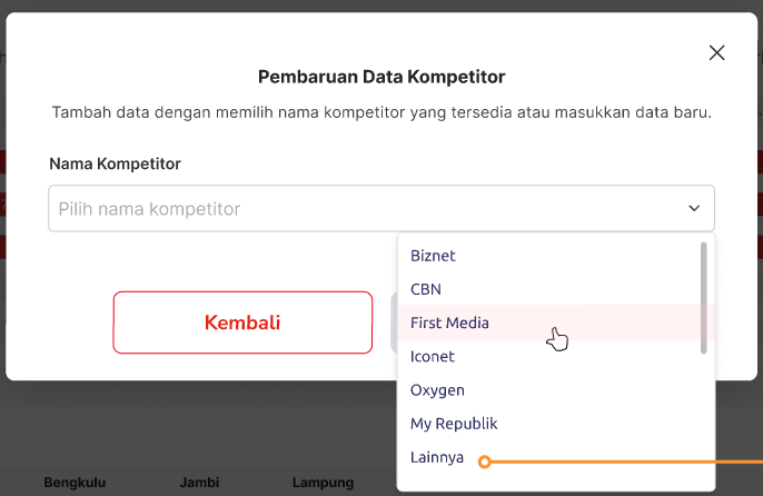 Tambah data dengan memilih nama kompetitor yang tersedia atau masukkan