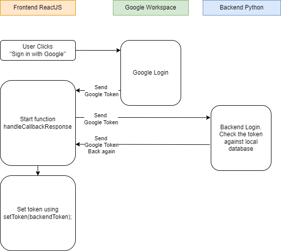 I am building a ReactJS application that uses Google Workspace and a Python backend for logging in users.