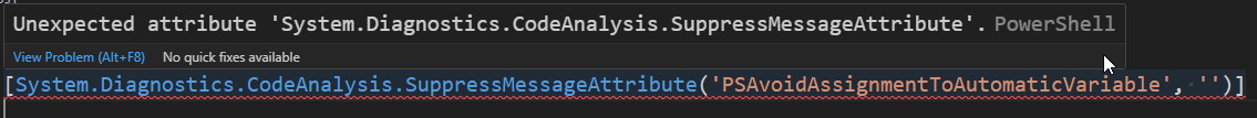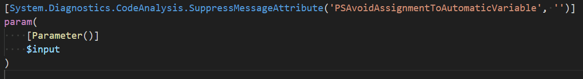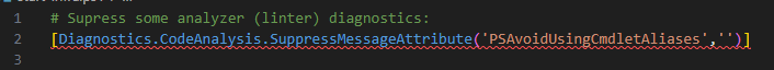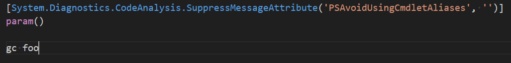 [Diagnostics.CodeAnalysis.SuppressMessageAttribute('PSAvoidUsingCmdletAliases','')]