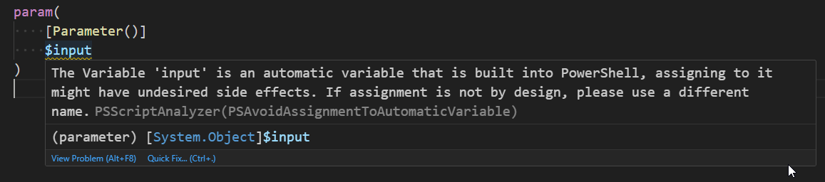 The MS docs are here: supressing rules but it really doesn’t work as documented when using VS Code. I have the following at the top of my script: